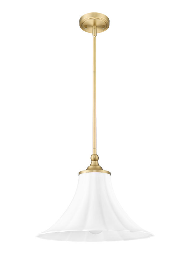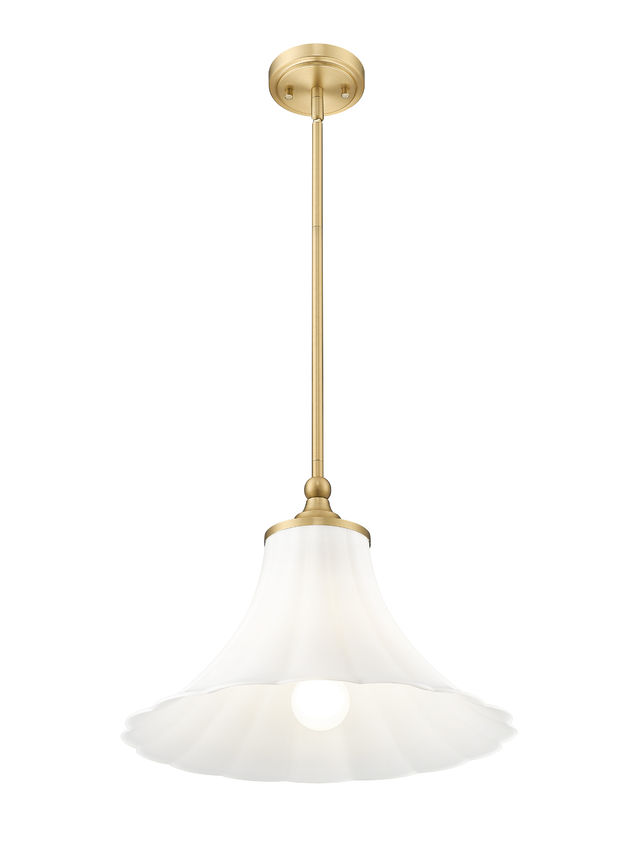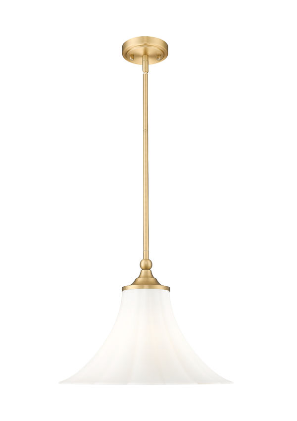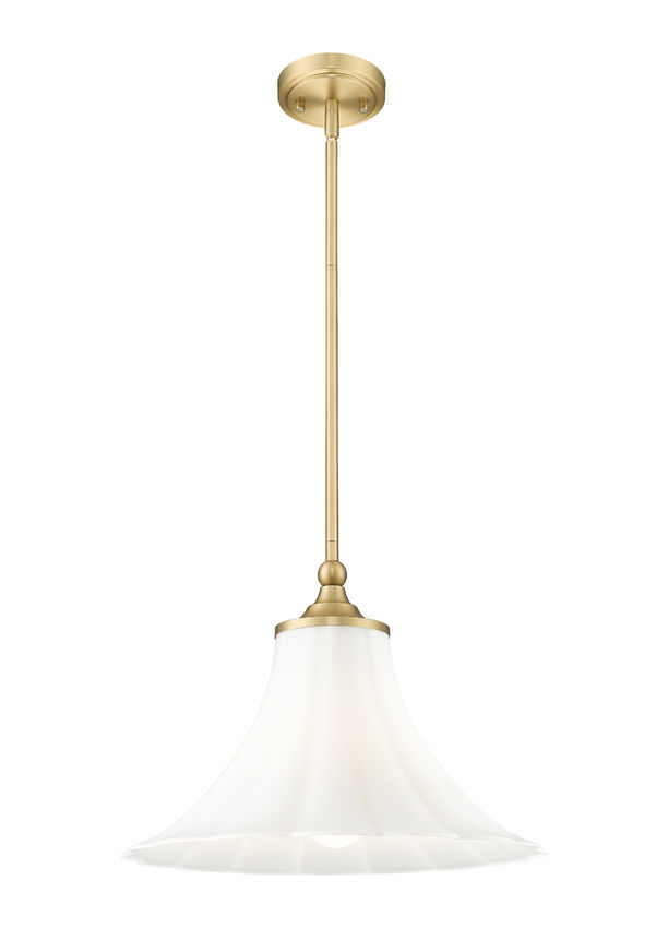 Softly styled with minimalist flavor, this single-light pendant pulls out all the stops to deliver a timeless design. Fluted matte opal glass forms a lovely shade infusing warm, dimmable illumination, as gorgeous modern gold finish metal framing adds a special touch in dining rooms, kitchens, and entryways.