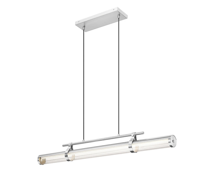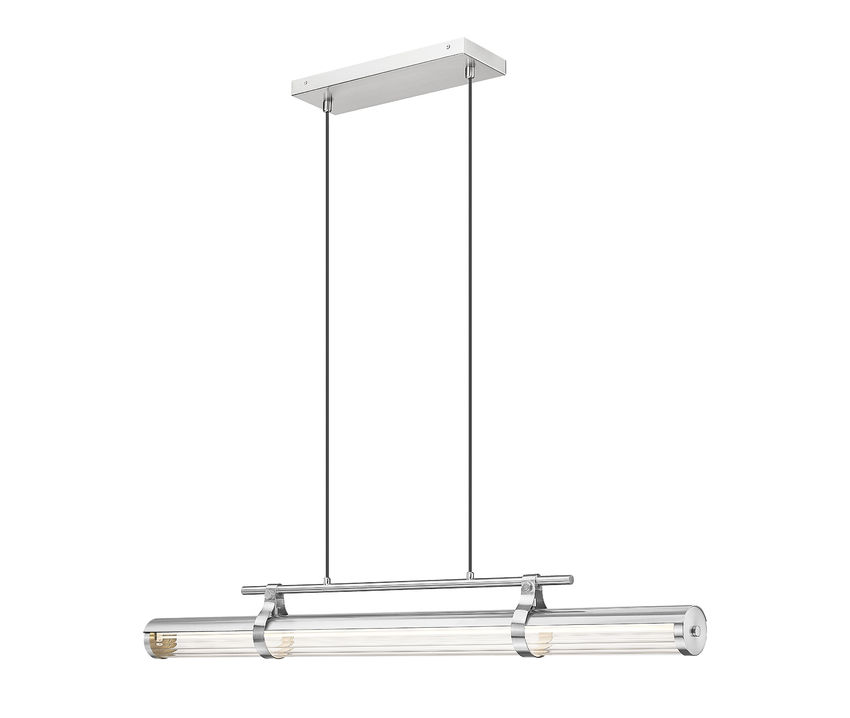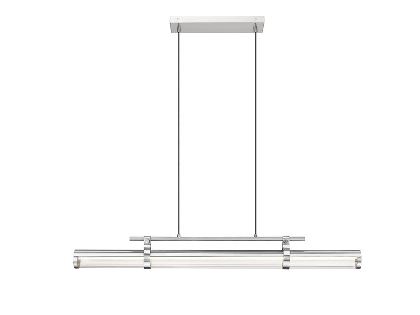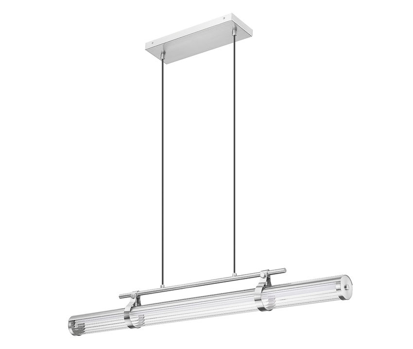 Everything old becomes new with the right alterations, and this chic one-light linear chandelier reflects a mix of deco and industrial style motifs. Cable suspension supports a horizontal tube-style light with brushed nickel framing and accents highlighting a clear reeded glass light source. Rotating positions offer optimal control for dimmable, targeting lighting, as this LED light and its color-selectable levels deliver supreme aesthetics and performance.