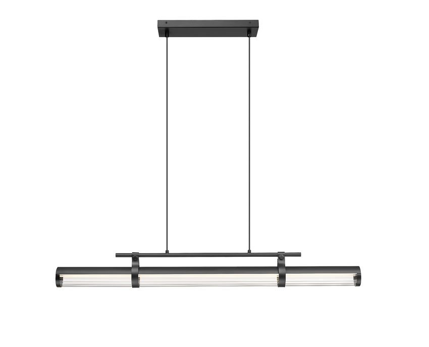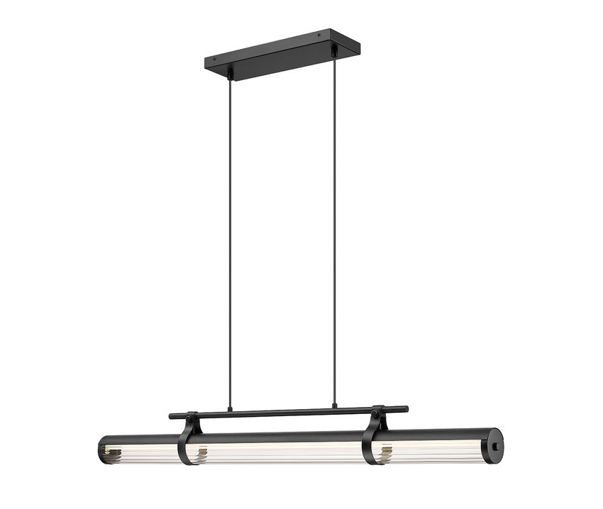 Timeless, with industrial influence, the design of this one-light linear chandelier adds a striking look with personality as it illuminates horizontally oriented settings. Fawn over matte black finish metal framing with extra detail as this cable-suspended fixture sends stylish illumination through a clear reeded glass cylinder shade, rotatable to perfect lighting angles. Dimmable and armed with mood-lifting color level adjustability, this chandelier complements kitchen islands, bar settings, and other settings around interiors.