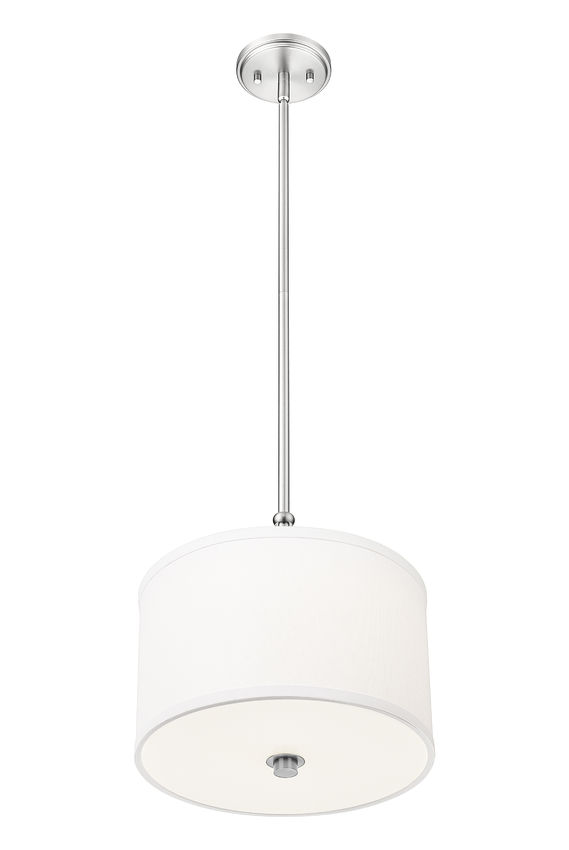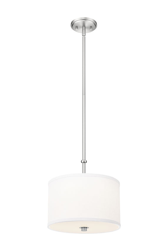 Classic elegance is both timeless and beautiful in a single-light pendant designed to light up any living space. A traditional drum shade tops a glass diffuser filtering light in a downward direction, with versatile brushed nickel finish steel framing adopting a subtle, simple silhouette. LED lighting is dimmable to customize illumination as desired.
