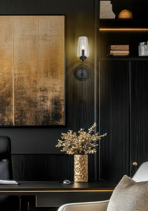 A wine goblet inspired silhouette pairs a delicate tapered glass bowl with a slim stem and candelabra light, lending refined character to this transitional one-light wall sconce. Its matte black finish is bold and dimensional, offering the perfect touch of contrast against your wall. Its candelabra light adds to a classic ambiance, perfect anywhere from powder room to living area.