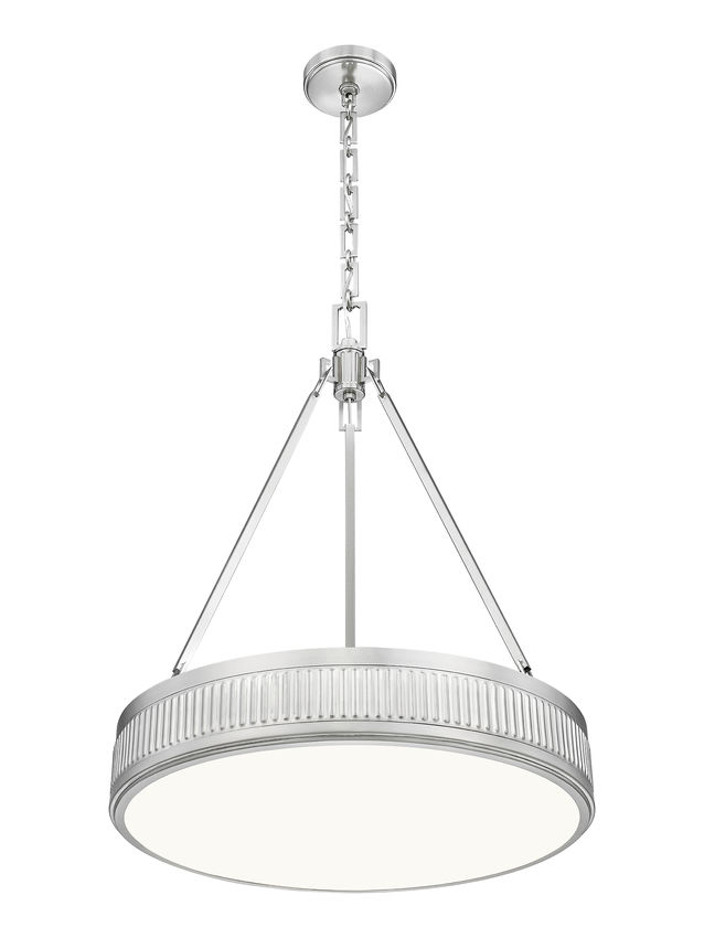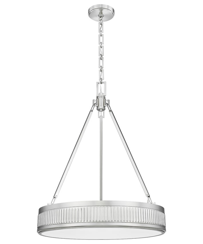 Urbane sophistication is the watchword in this modern three-light LED pendant. From the Quinn collection, it's an updated version of mid-century charm, pairing a shallow drum with fluted bands that create superb texture and dimensionality. Its satin nickel finish complements in any setting, while a Z-Lite EZ change LED module tucked within is light color selectable, dimmable, and energy efficient.