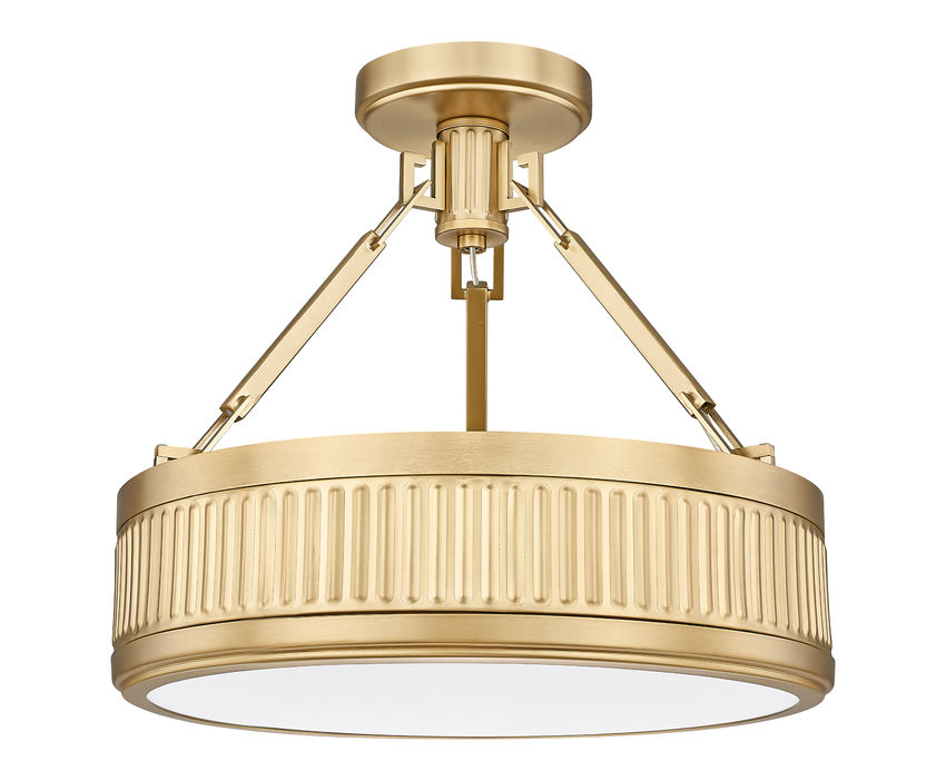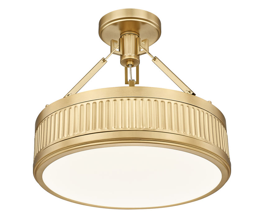 Bring impeccable texture and a hefty dose of mid-century charm to your home's bedroom or den with this modern one-light semi-flush mount ceiling light. Perfect for compact spaces, it offers plenty of dimension with fluted bands and a rich modern gold finish. The shallow drum profile casts bright, diffused illumination with a Z-Lite EZ change LED module that offers dimming capabilities, light color selectability and energy efficiency.