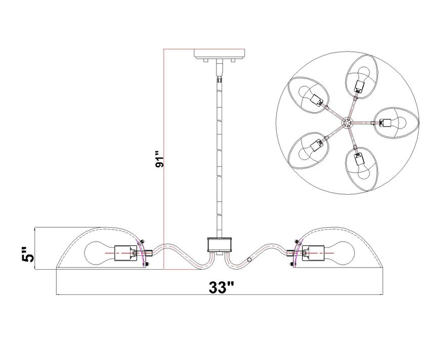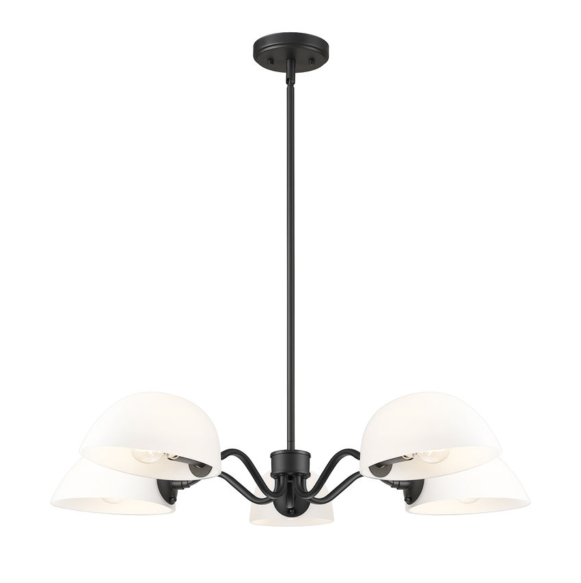 Choose stylish flexibility and versatility with this modern five-light chandelier. It pairs elegantly domed opal glass shades with curvy arms and a matte black frame finish, delivering impressive depth and character over living, dining and bedroom spaces. The shades rotate to cast up or down lighting to suit your preference and space.