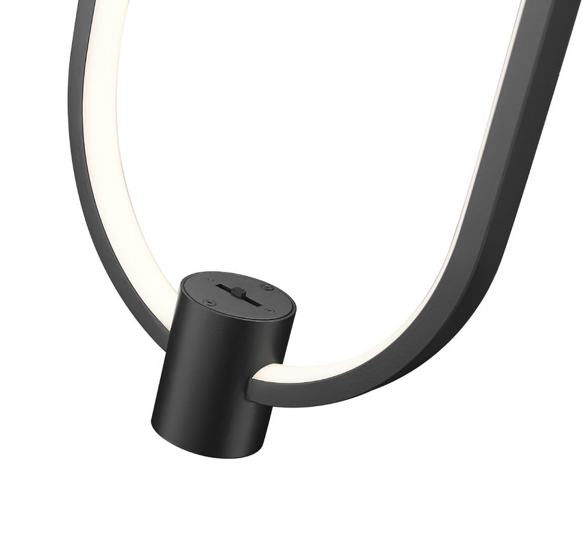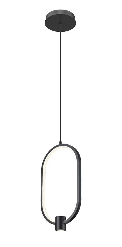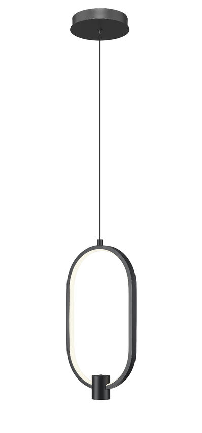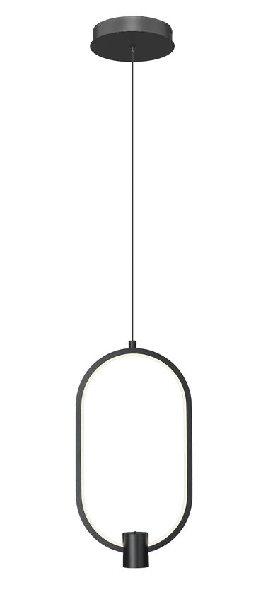 With its playful, casual design and bold matte black aluminum construction, this one-light pendant is an obvious choice for laid-back style. Open metalwork creates an elongated open oval body lined with an acrylic diffuser, as a charming single cylinder accent balances its proportion. This LED light is dimmable to achieve varying levels of illumination.