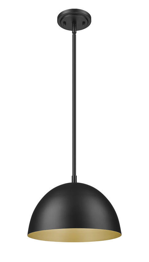 Nothing says classic like a dome silhouette in an interior light fixture, and this simple yet stylish one-light pendant delivers timeless style. Bold matte black steel construction forms a sleek dome shade with lush gold lining, and conventional rod suspension fitting a perfect shape. This timeless fixture is dimmable, creating varied light levels to fulfill night and day needs.