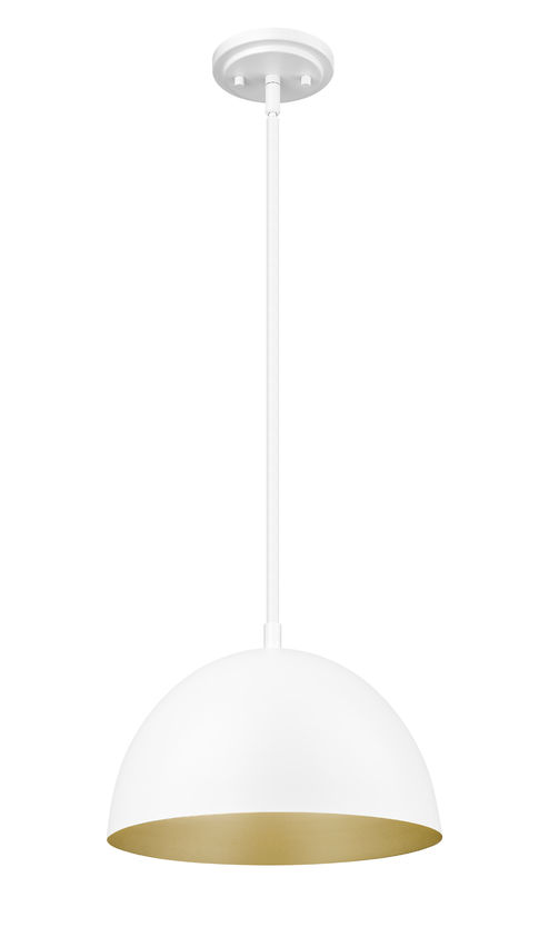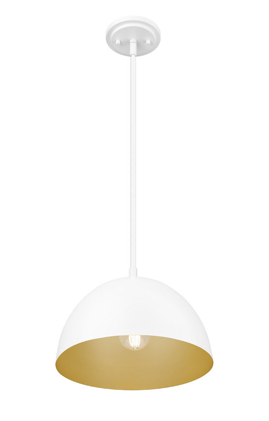 A fresh matte white finish over steel construction flatters this one-light dome pendant, a timeless salute to both farmhouse and industrial style motifs. Steel construction includes a lush gold shade interior and is lightweight and yet sturdy, perfect for hovering over islands in multiple configurations, or installed alone over dining tables and in foyers. Dimming features expand the functionality of a tasteful fixture, making variable illumination levels an option.