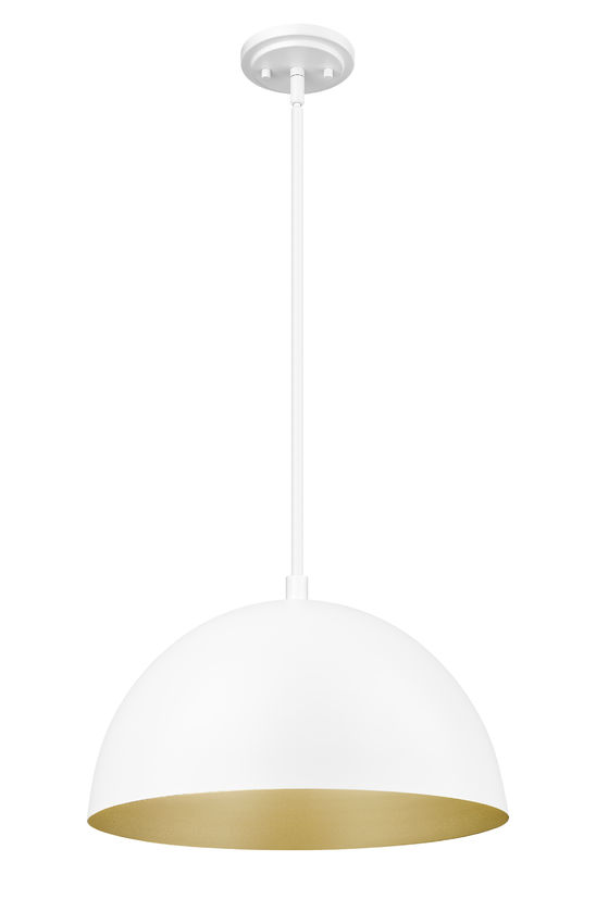 Classic style moves between farmhouse and industrial in a timeless one light dome pendant, an exceptional choice for versatility and themed personality. With a matte white finish over steel construction and an elegant gold lining, this light fixture reflects a festive feel, perfect for dining rooms, living areas, and foyers. Take advantage of dimmable light levels to create moods and meet time-of-day requirements.