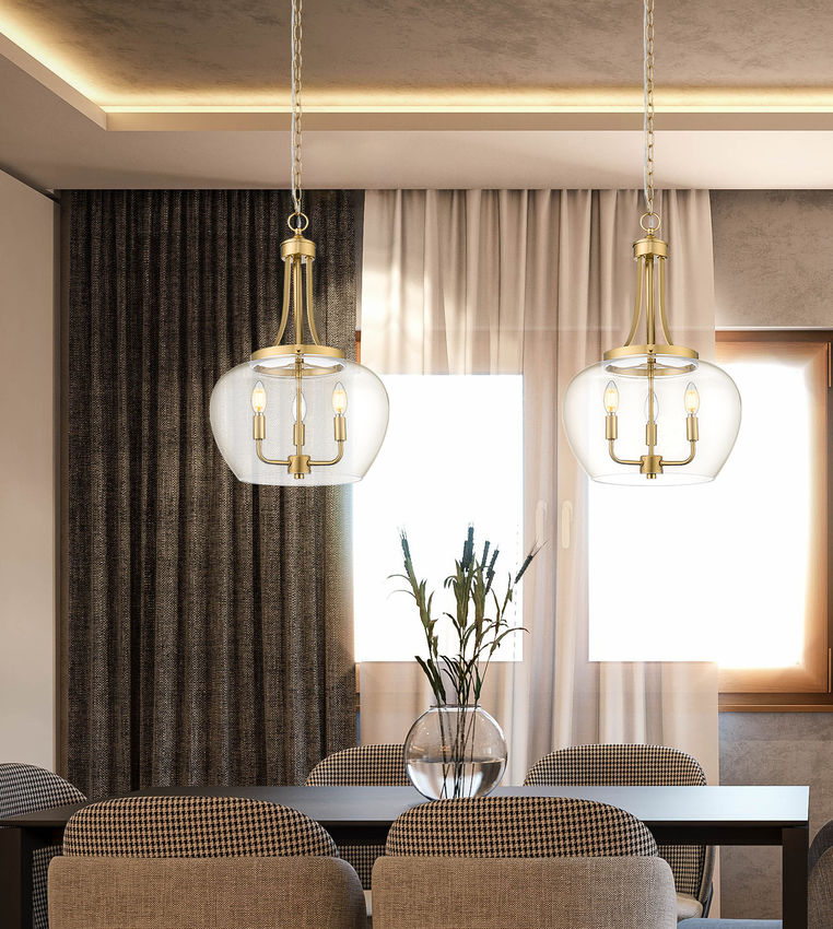 Devote a visible setting to this three-light pendant, a romantic fixture with timeless elegance. With long, graceful arms slightly contouring and an internal candelabra-style light socket, this versatile fixture embellishes interior spaces from bedrooms to hallways, and dining rooms to foyers. Lighting dims to customize levels of illumination for altering moods or meeting specific needs.