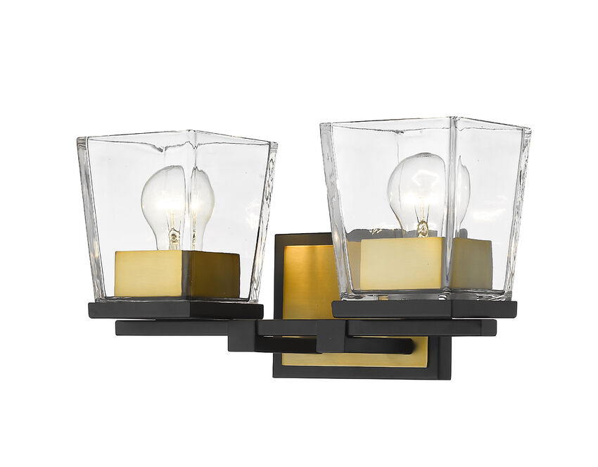 With a sleek cosmopolitan attitude and a beautiful blend of glass and metal, this two-light vanity offers a sophisticated way to stylize a contemporary compact bath space. Matte Black and rich Olde Brass serve as stunning finishes for a tasteful fixture delivering a geometric silhouette and a contrasting warm and bold palette.