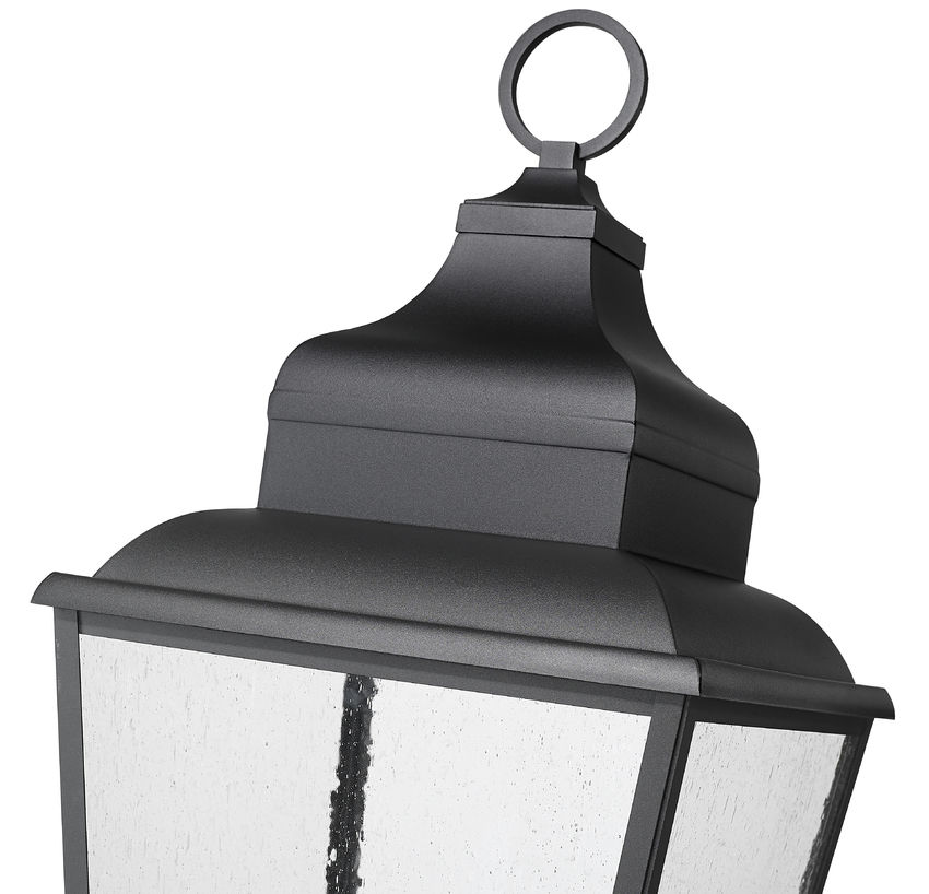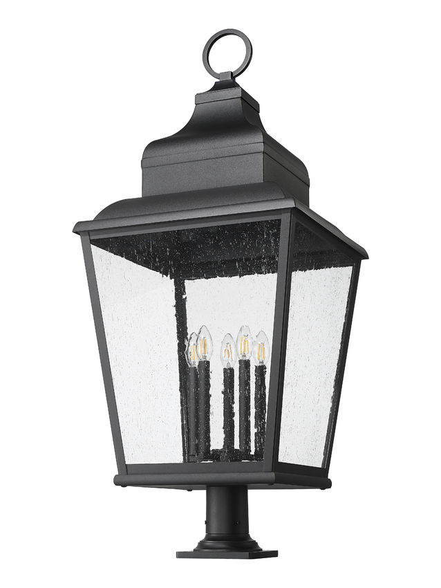 Accents and detail embellish this charming five-light outdoor pier mounted fixture, lifting the aesthetic of a custom outdoor space. Highlighting gardens and walkways, its lantern motif is crafted of sand black finish aluminum with clear seedy glass panels that inspire a dreamy look. Internal candelabra bulb mounts offer a village motif to a dimmable light perfect for 24-hour illumination.