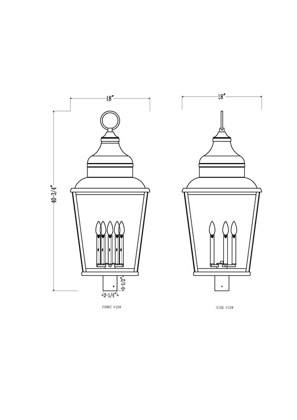 A twist on iconic lantern-inspired design, this five-light outdoor post mount fixture enhances residential or commercial exterior settings with a village motif. Sand black finish aluminum crafts a tapered frame with a tall, detail-rich roof, as clear seedy glass panels inspire with a bit of romance. Candelabra-style holders reflect a romantic ambience in a dimmable light perfect for round-the-clock illumination.