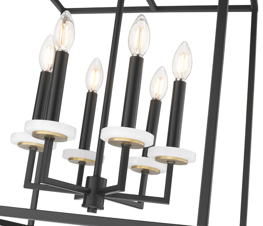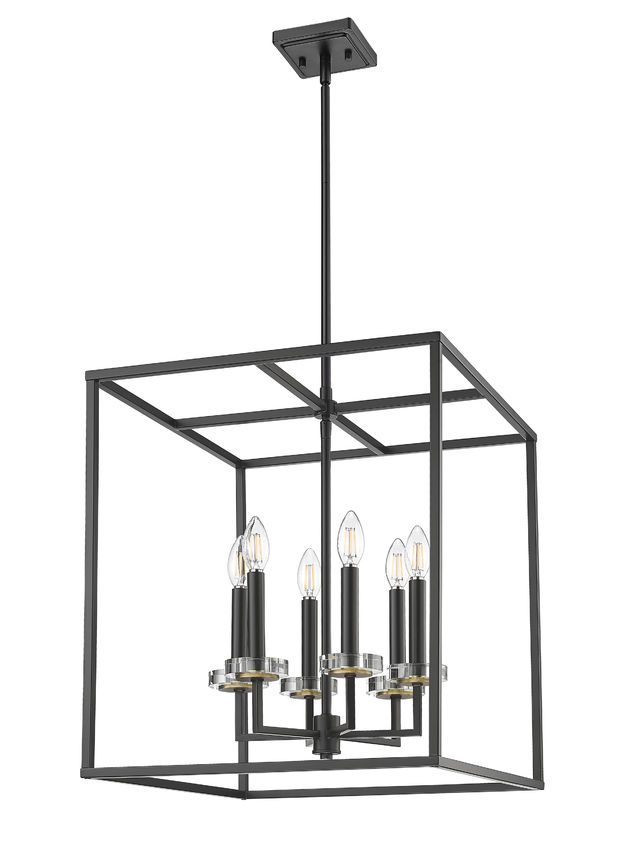 An open metalwork design is refreshing with clean lines and a bit of delicacy as this six-light chandelier takes a page from a cage motif to deliver ambient lighting. Matte black steel framing shows off the charm of candelabra-style bulb mounts dressed up with chic boboches. Dimming features create mood lighting and time-sensitive illumination.