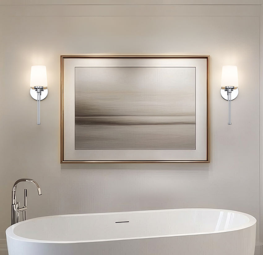 Framed in gleaming metal, this chrome one-light wall sconce catches every hint of daylight by morning and the sparkle of water and glass by night, lending a crisp urban note to baths and hallways. Mounted in pairs beside a mirror or staggered along a corridor, this sleek piece helps tie together polished fixtures, framed art, and door hardware so the entire room feels intentionally pulled together.
