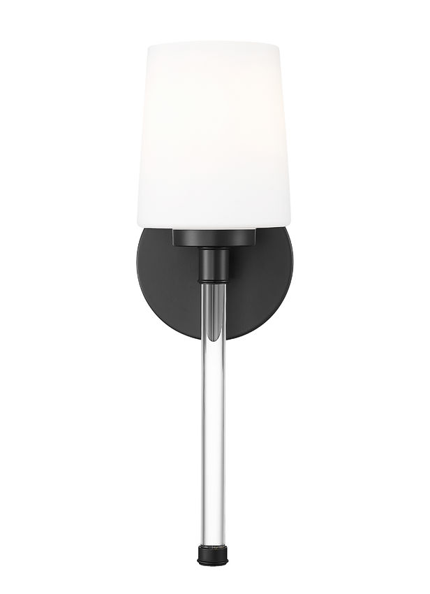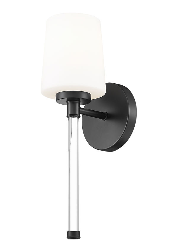 In a richly dark finish, this modern matte black one-light wall sconce brings a tailored edge that outlines pale walls and stone with a strong, confident silhouette. The slender crystal stem keeps the look light and airy, so the fixture suits everything from a compact powder room to a cozy reading corner beside the bed. Switch it on and this sculptural light paints a gentle pool of illumination that makes artwork, mirrors, and architectural details feel a little more dramatic.