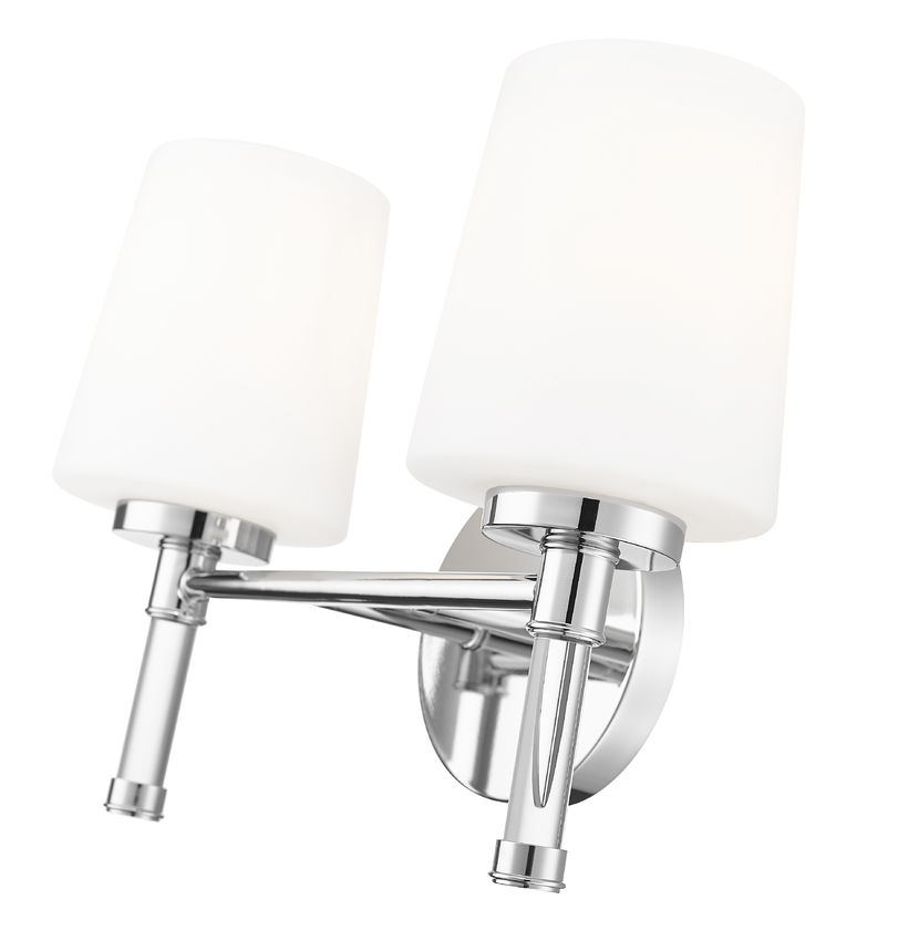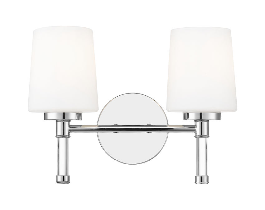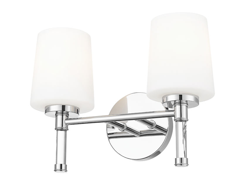 Polished metal and twin opal shades give this chrome two-light vanity light an easy glamour that sparkles against tile and glass, especially when mounted over a generous mirror. The slender arms and crystal stems keep the profile slim, so the fixture feels refined, never bulky, even in a modest-sized room. Over a double vanity, in a chic powder room, or above a freestanding sink, this luminous light lends the space the polished confidence of a favorite city hotel.