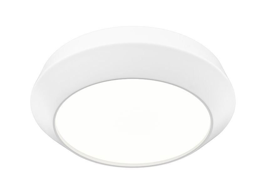 Take in a simple design with stylish results as this one-light flush mount ceiling light defines a low-key motif. With a flared side profile that tapers toward a kitchen, dining room, or hallway ceiling, its matte white finish steel frame and obscure white acrylic shade infuses LED-integrated illumination in a downward direction. Dimming options are perfect for time-of-day usage.
