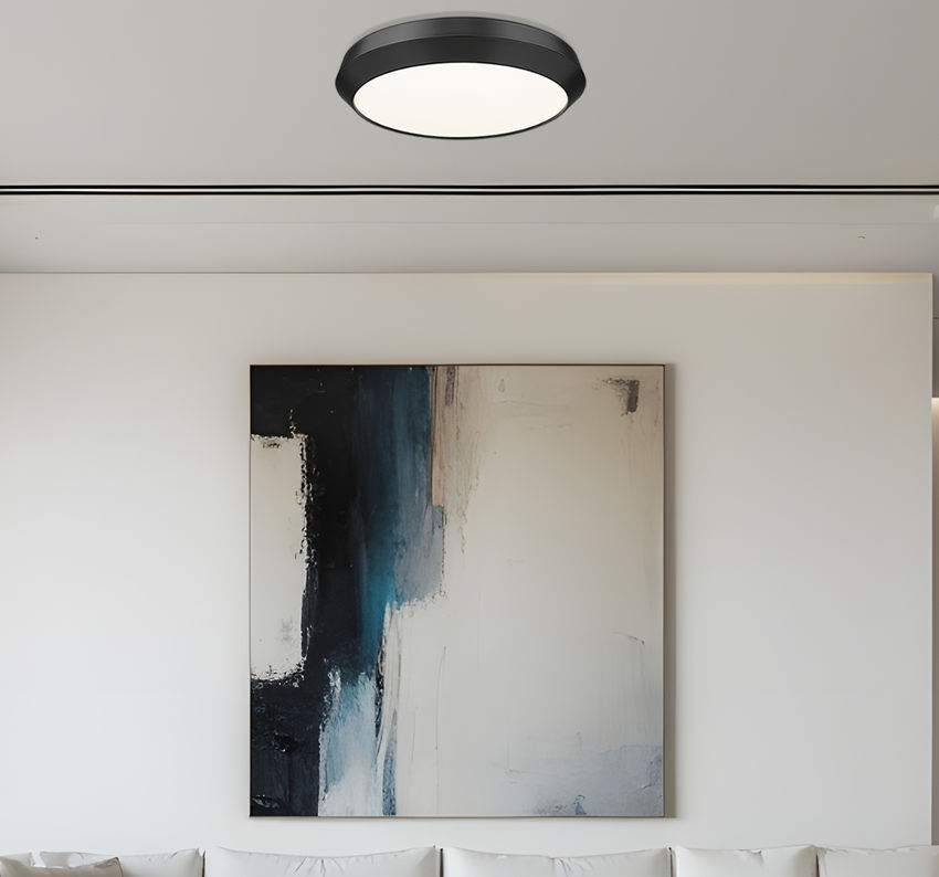 Strong in silhouette, this matte black LED flush mount ceiling light creates a dark ring of contrast that instantly sharpens pale ceilings in lofts, bedrooms, or home offices. The generous acrylic diffuser spreads a smooth, even glow that easily replaces bulky fixtures, so the entire room feels more open and contemporary while still well-lit for everyday life. Dim it low for movie nights or bring it up for weekend projects, and this streamlined disk confidently anchors the room from above.