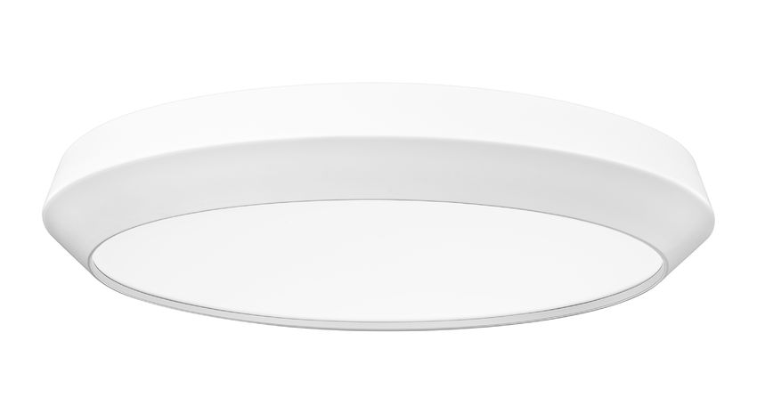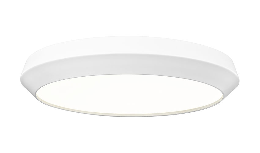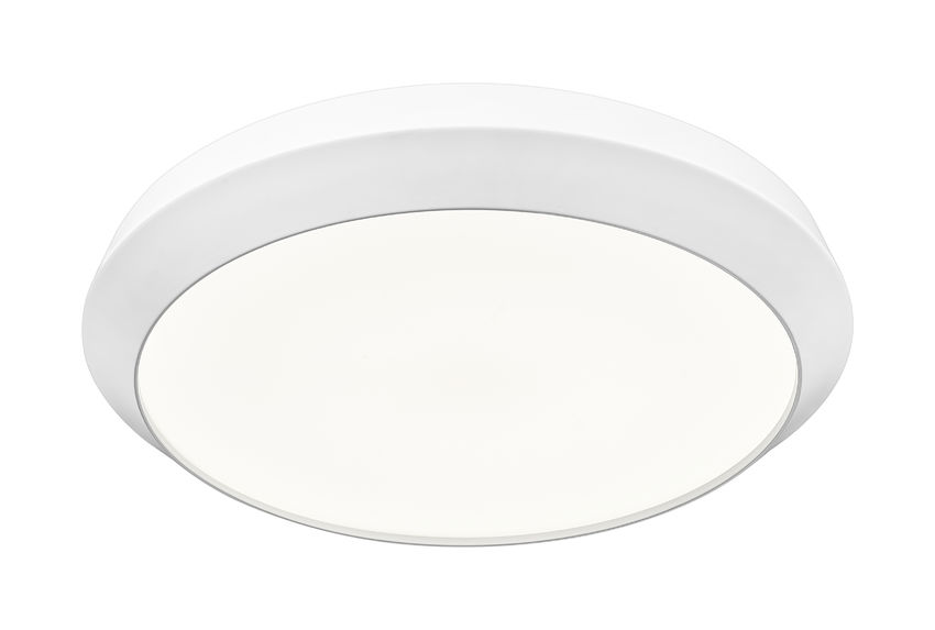 Make lighting work in any space with a single-light flush mount ceiling light delivering a low-profile design. This matte white finish steel constructed light frame adds a flared side profile, clever and enticing. Dimmable LED-integrated lighting flows through a generous white acrylic shade, creating adjustable light levels perfect for any function.