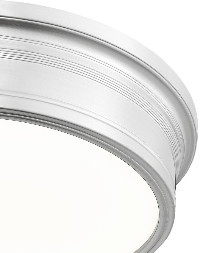 Scaled for busier gathering spots, this brushed nickel transitional LED flush mount ceiling light carries its classic trim in a slightly broader ring that suits kitchens, living rooms, and multipurpose family spaces. The larger lens sends light confidently into corners and across work surfaces, supporting homework at the table, conversations on the sofa, and weekend cooking sessions. Because the profile stays close to the ceiling, this piece keeps sightlines open to windows and art, and the familiar metal finish lets it blend gracefully with both stainless and satin hardware.