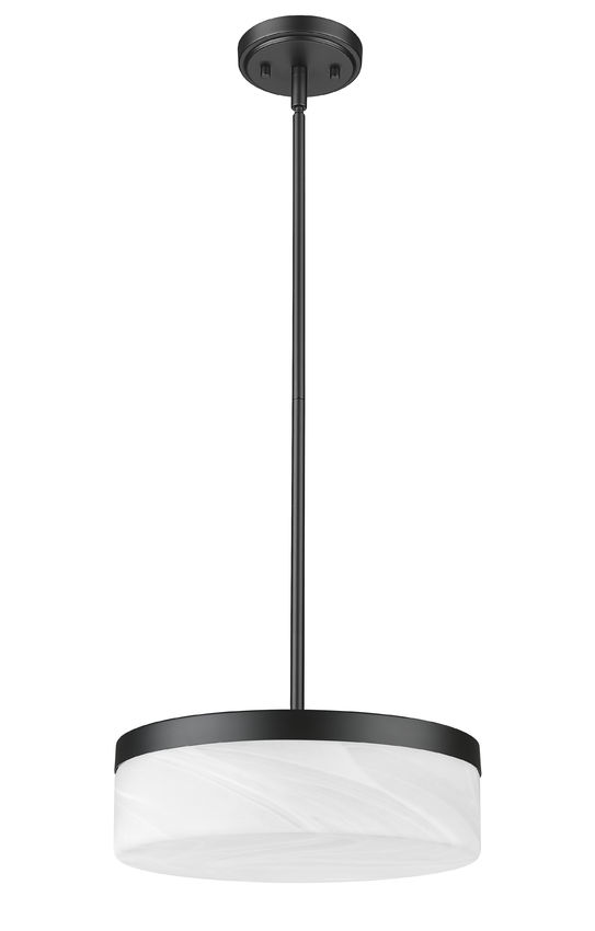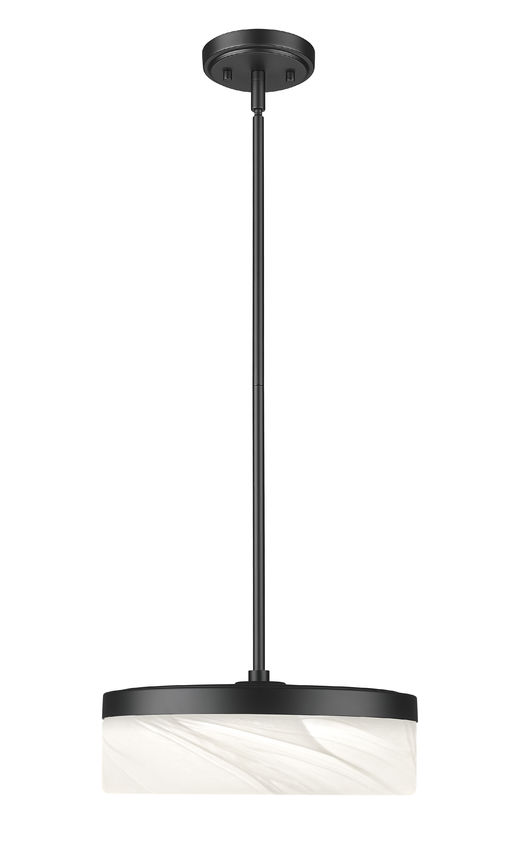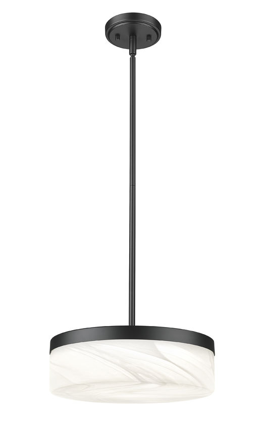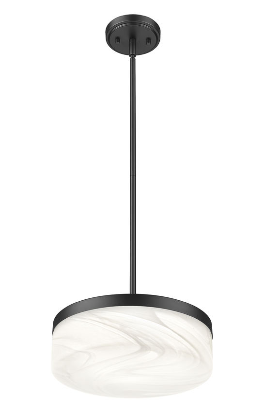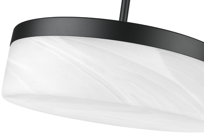 Suspended on a slender stem above a table or island, this matte black LED glass pendant light frames a clouded white shade that keeps the silhouette airy while still grounded. Glow from within turns the glass into a soft lantern that brings warmth to dinner, brightens cookbook pages, or gently defines a conversation zone in the living room. Hang a single pendant for a focused accent or line several across a counter, and the feathered glass keeps the entire arrangement calm, cohesive, and beautifully balanced.