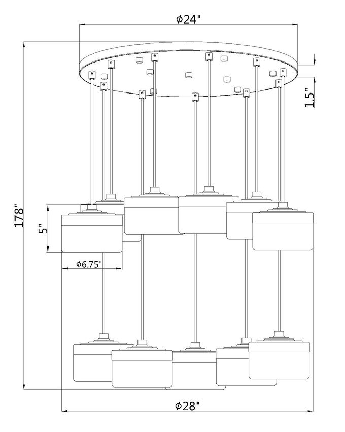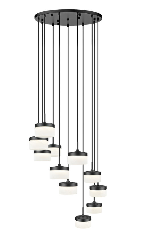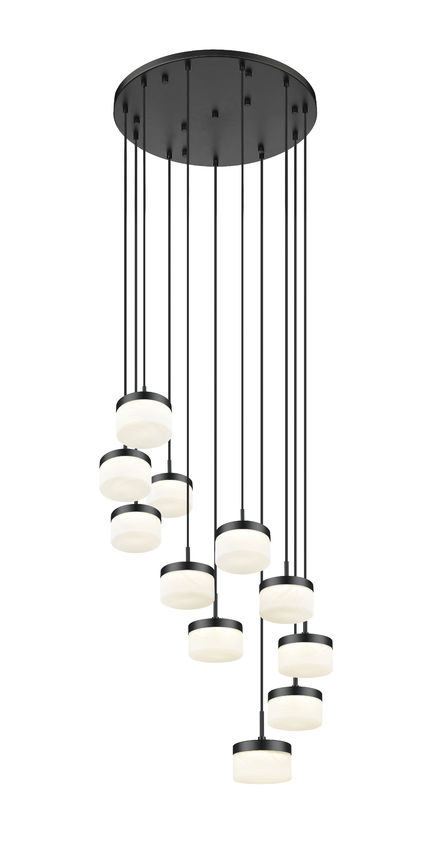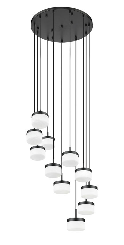 From a round canopy high above, this matte black multi-light LED chandelier releases slim cables at varied lengths that let the clouded shades gather in a gentle cascade. Because each element carries integrated LEDs, the composition creates a column of brightness that works beautifully in tall foyers, stairwells, or living rooms where you want both presence and practical illumination. The interplay of dark metal, clean lines, and glowing glass establishes a modern focal point that anchors the architecture and makes every arrival feel a little more memorable.