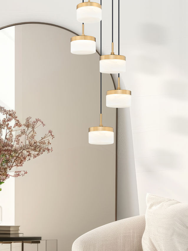 This modern gold 5-light LED chandelier suspends frosted cloud shades that seem to float like soft orbs over the room. The warm tone of the metal pairs beautifully with natural wood tables, upholstered seating, and even painted furniture, creating a cohesive, welcoming center. Hang it in a dining room, bedroom sitting area, or stylish home office, and it instantly elevates everyday routines into small occasions.
