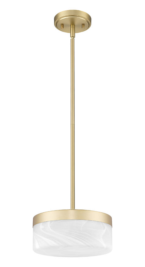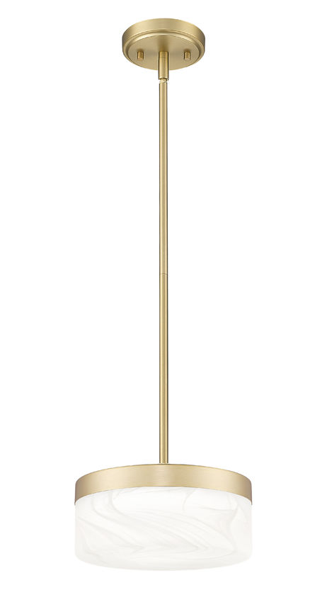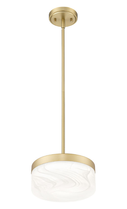 Softly gleaming, this modern gold drum LED pendant light lowers a luminous halo that flatters wood tones, stone, and upholstered seating alike. The clouded shade spreads comfortable brightness across dining tables or family rooms so everyone can see clearly without squinting into exposed bulbs. Whether it hovers over a round pedestal table or a cozy sectional, it sends a warm, gracious signal that the room is meant for gathering.