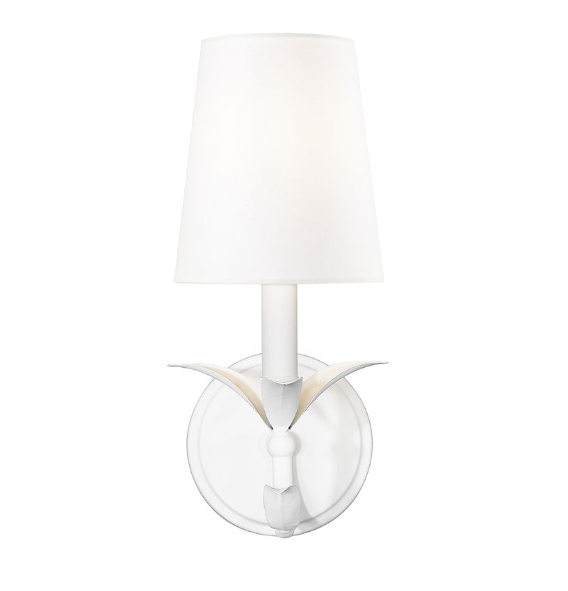 With a softly textured white finish steel frame, this one-light wall sconce could not be more artisan and earthy at the same time. We love the delicate fronds simulating botanicals, making its curved arm an example of chic style. A candelabra bulb base weaves romance into a dimmable light fixture complementing bedrooms, living rooms, and hallways.