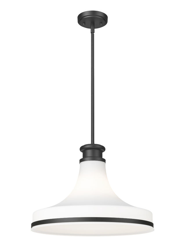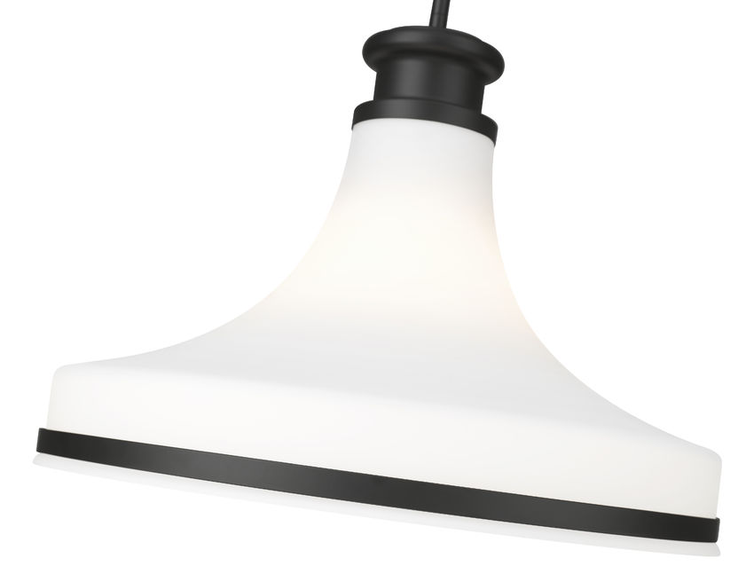 A stylish form of vintage and deco styling creates this one-light pendant with a crisply contrasting palette. Kitchens, dining spaces, and foyers come to life with a fixture featuring matte black steel framing and accents, and a delicate matte opal glass shapely shade that makes a statement. This standout fixture offers mood lighting through dimming features.